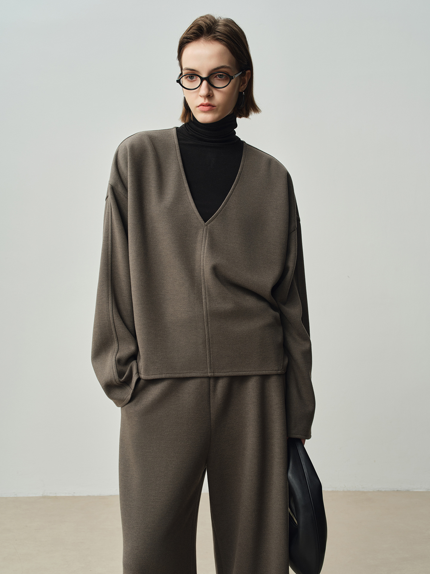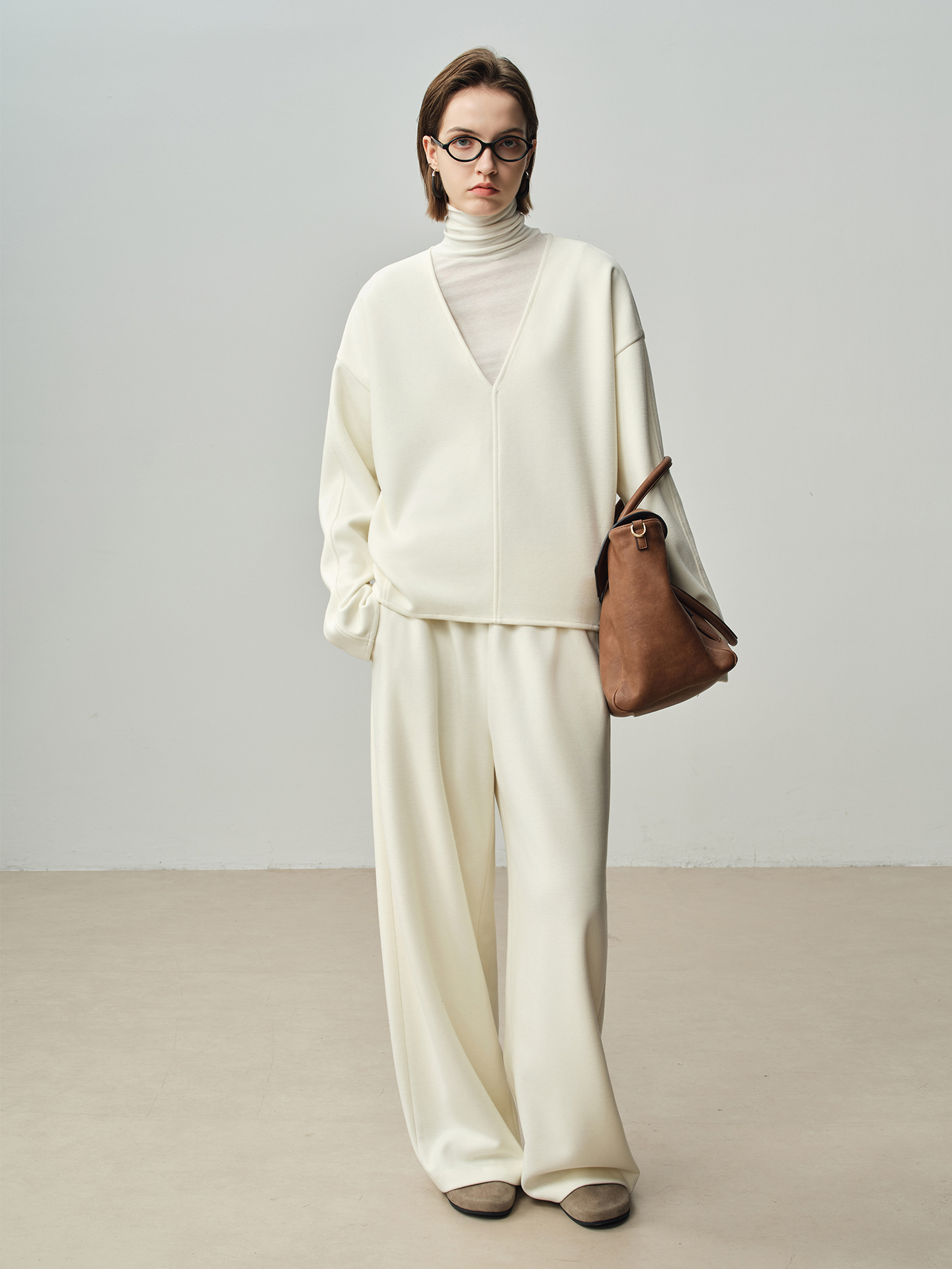 Casual Style Elegant Layered V-Neck Pullover Loose Sweatshirt Women Soft Elastic Waist Banana Pants Sweatpants