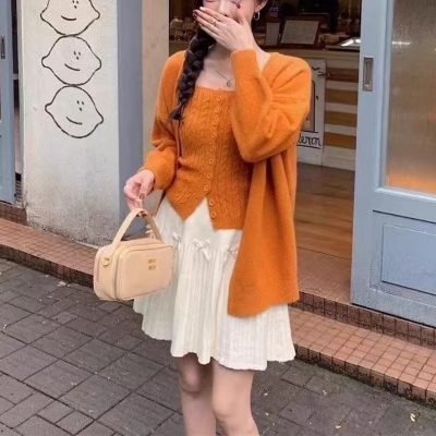 Two-Piece Hong Kong Style Retro Twist-Breasted Knitted Vest V-Neck Cardigan Suit for Women in Autumn and Winter Loose Lazy Tops