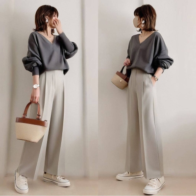 In-Stock Japanese Style 2025 Autumn New V-Neck Sweatshirt Top and Casual Pants Two-Piece Set