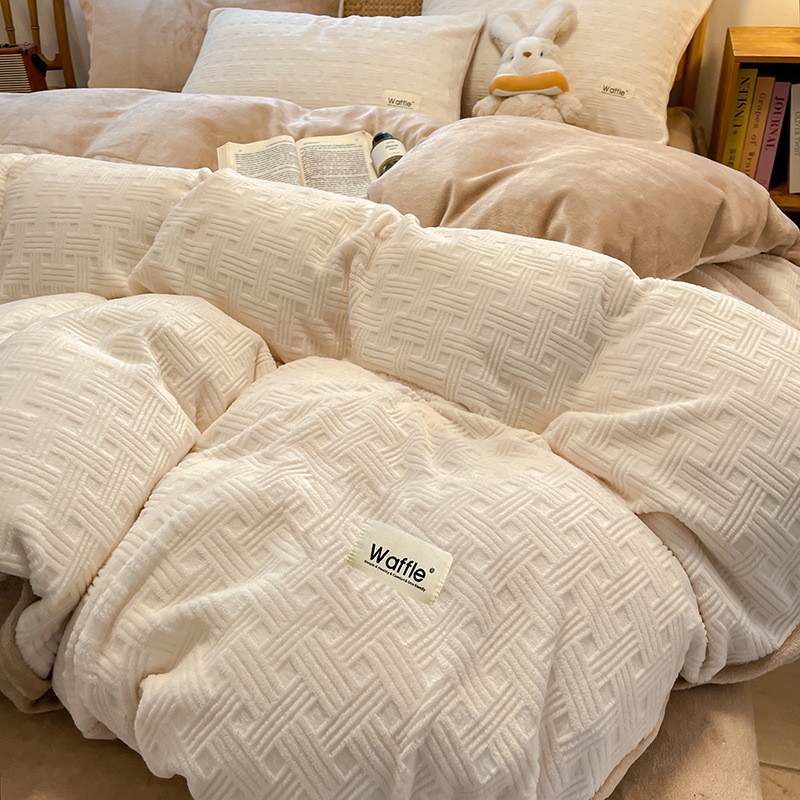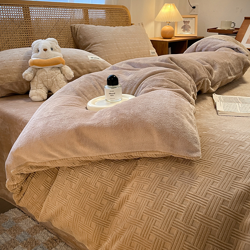 Class A New Plaid Milk Velvet Four-piece Set Winter Warm Single Double Quilt Cover Bed Sheet Three-piece Set Double