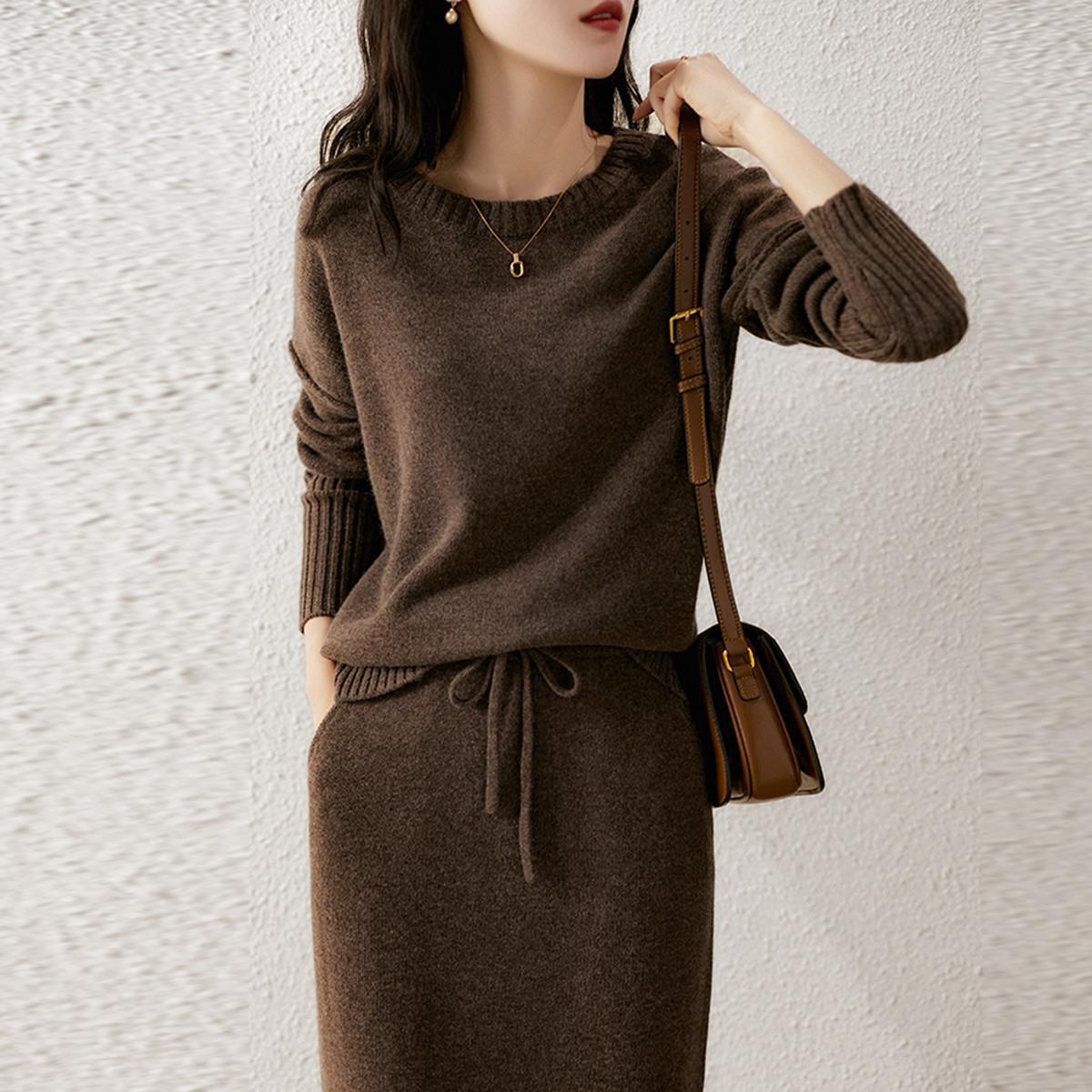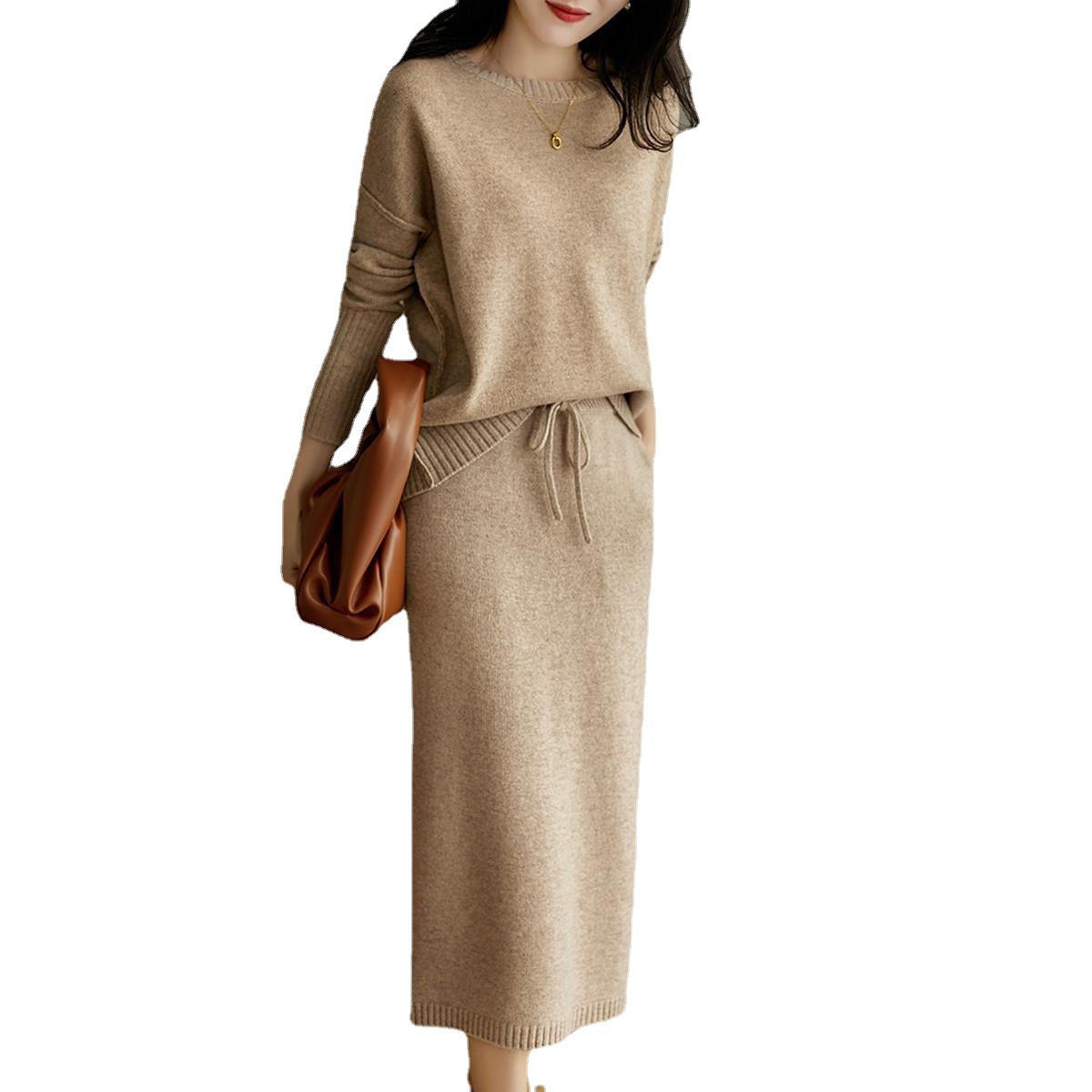 Foreign Trade Cross-Border 2025 Autumn and Winter New Round-Neck Sweater Dress Set for Women, Loose Pullover Knit Lazy Two-Piece Set