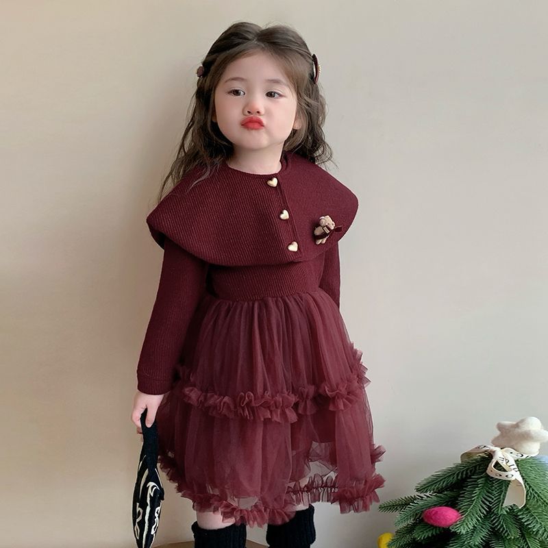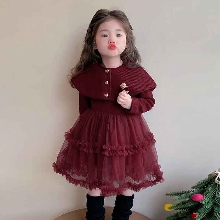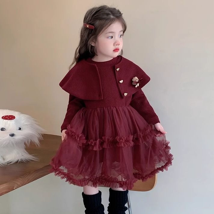 Girls' Velvet Dress Winter New Kidsren's Thickeneded Princess Dress Cake Dress Fashionable Baby Girl Mesh Skirt