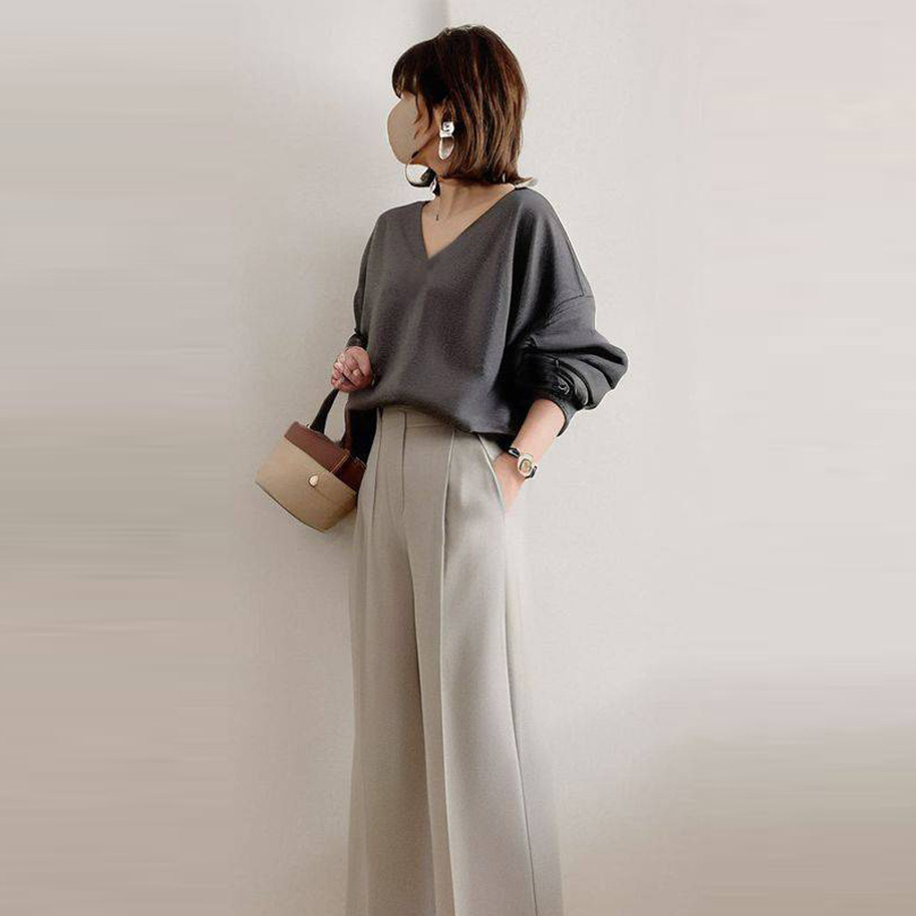 In-Stock Japanese Style 2025 Autumn New V-Neck Sweatshirt Top and Casual Pants Two-Piece Set