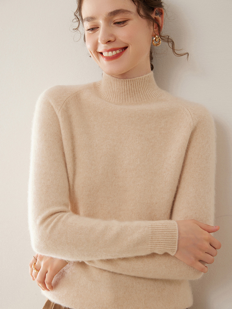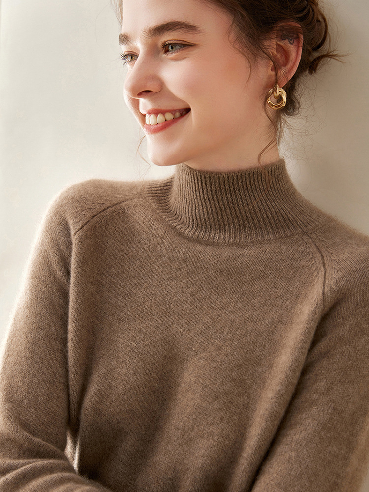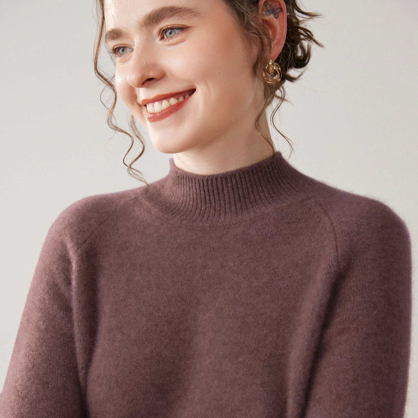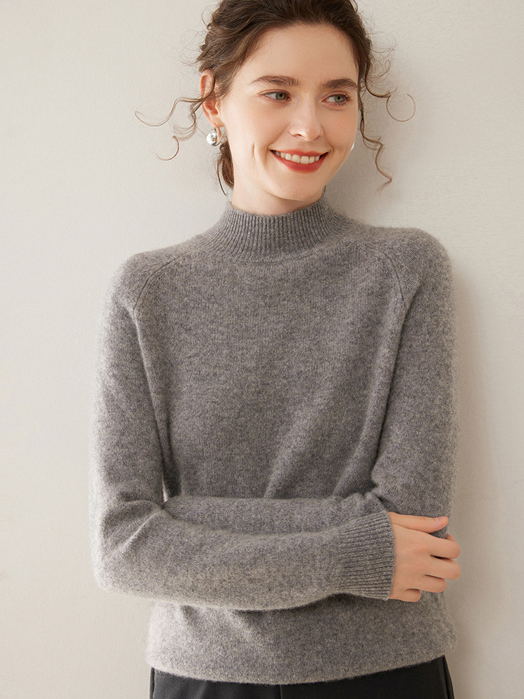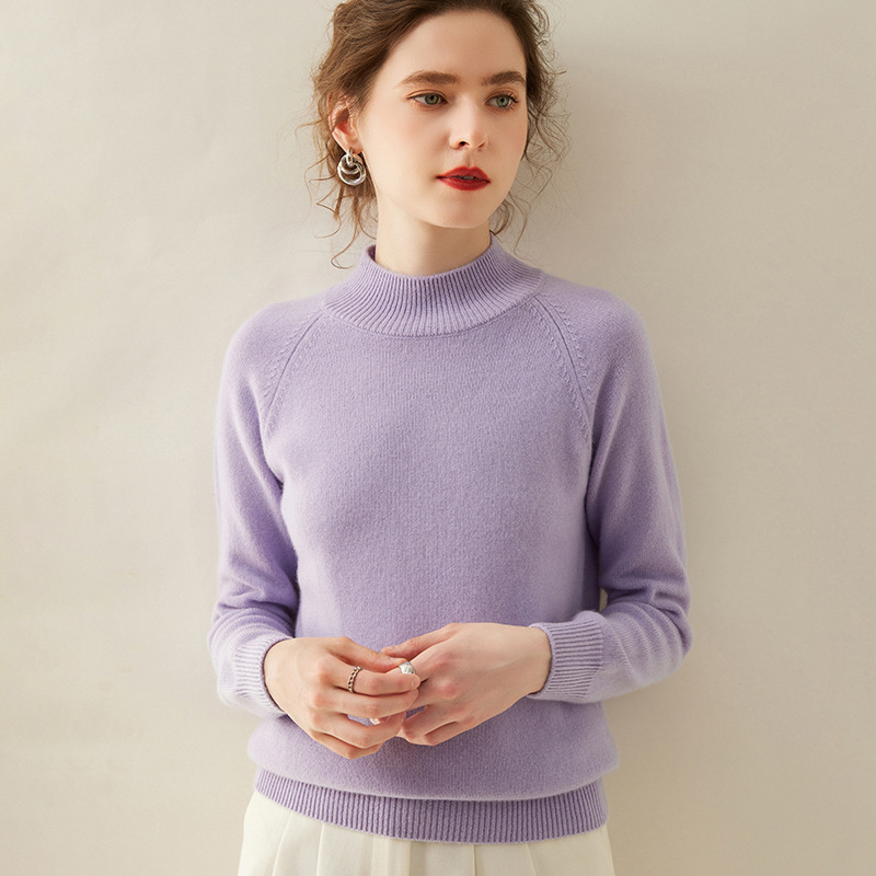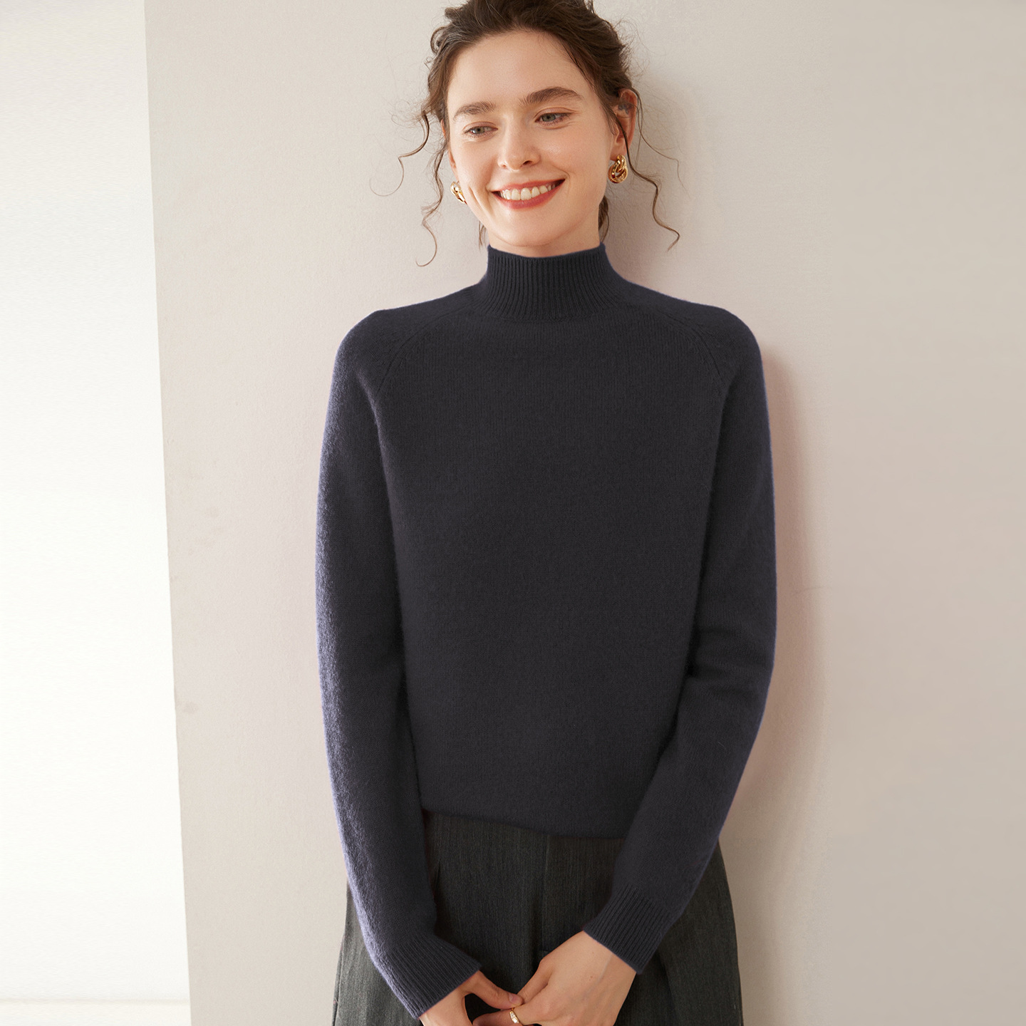 Ordos City 100% Pure Cashmere Sweater for Women, Half Turtleneck, Thickened, Loose Fit, Slimming, Skin-Friendly Knit Base Sweater