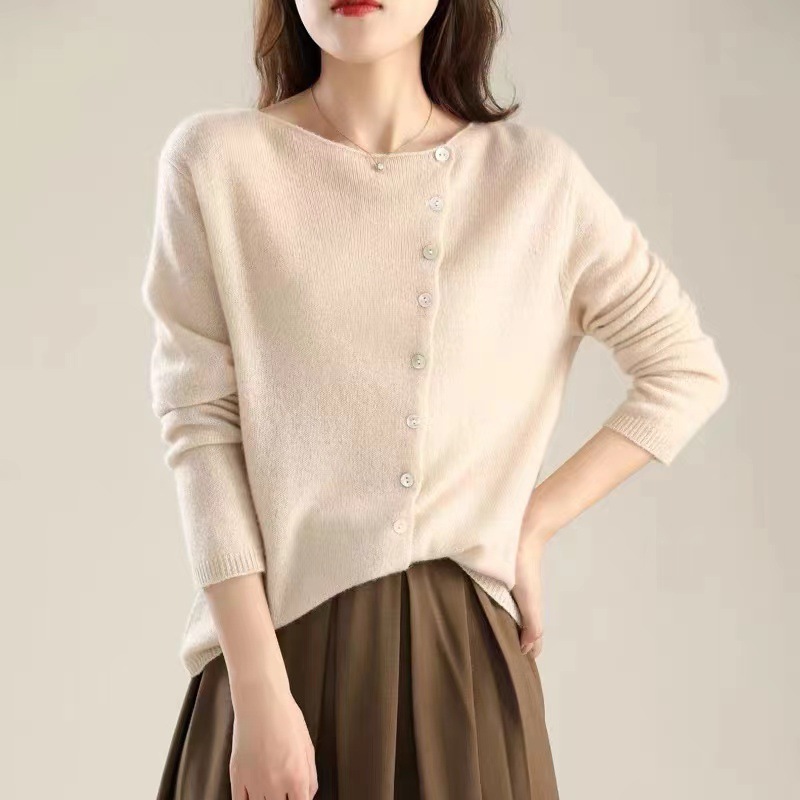 Unique Design~ 2025 Autumn/Winter Single-Breasted Cashmere Cardigan for Women, Solid Color Cashmere, Low Round Neck, Thin Knit Outerwear