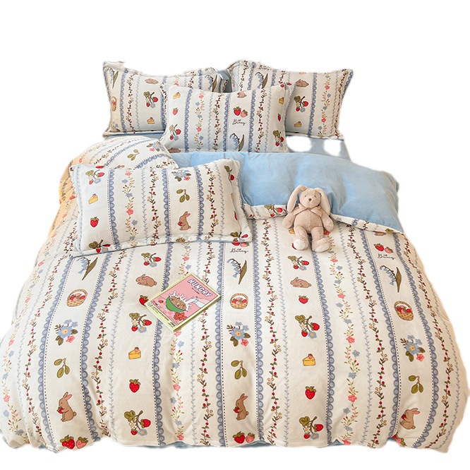 - Flower typeStrawberry bunny [class a, thickened, warm, soft and skin-friendly], Feifei rabbit [class a, thickened, warm, soft and skin-friendly], Cocoa bow [class a, thickened, warm, soft and skin-friendly], Happy time [class a, thickened, warm, soft and skin-friendly], French garden [class a, thickened, warm, soft and skin-friendly], Maillard plaid [class a, thickened, warm, soft and skin-friendly], Smile ice cream [class a, thickened, warm, soft and skin-friendly], Simple style [class a, thickened, warm, soft and skin-friendly], Tianyuan [class a, thickened, warm, soft and skin-friendly], Garden bunny z [category a, thickened and warm, soft and skin-friendly], Sweetheart bunny [class a, thickened, warm, soft and skin-friendly], Niuniu [class a, thickened, warm, soft and skin-friendly], Meow meow story [class a, thickened, warm, soft and skin-friendly], Purple tulip [class a, thickened, warm, soft and skin-friendly], Fendai bunny-velvet [class a, thickened, warm, soft and skin-friendly], Rainbow candy [class a, thickened, warm, soft and skin-friendly], Loli bear [class a, thickened, warm, soft and skin-friendly], Candy house [class a, thickened, warm, soft and skin-friendly], Huamanting [class a, thickened, warm, soft and skin-friendly], Starry sky [class a, thick, warm, soft and skin-friendly], Love strawberry [class a, thickened, warm, soft and skin-friendly], Ziyun rabbit [class a, thickened, warm, soft and skin-friendly], Fairy tale world [class a, thick, warm, soft and skin-friendly], Cute dinosaur [class a, thickened, warm, soft and skin-friendly], Gentleman stripes [class a, thickened, warm, soft and skin-friendly], Elegant green [class a, thickened, warm, soft and skin-friendly], Colorful striped pumpkin [class a, thickened, warm, soft and skin-friendly], Chocolate beans [class a, thickened, warm, soft and skin-friendly], Tianzi grids [class a, thickened, warm, soft and skin-friendly], Little bear [class a, thickened, warm, soft and skin-friendly], Encounter [class a, thickened, warm, soft and skin-friendly], Star rabbit [class a, thick, warm, soft and skin-friendly], Lucky flower [class a, thickened, warm, soft and skin-friendly], Academic style [class a, thick, warm, soft and skin-friendly]Size specifications1.2m bed sheet three-piece set [quilt cover suitable for 150*200 quilt], 1.5m bed sheet four-piece set [quilt cover suitable for 200*230 quilt], 1.8m bed sheet four-piece set [quilt cover suitable for 200*230 quilt], 2.0m bed sheet four-piece set [quilt cover suitable for 220*240 quilt], 1.5m fitted sheet set of four [quilt cover suitable for 200*230 quilt], 1.8m fitted sheet set of four [quilt cover suitable for 200*230 quilt], 150*200cm single quilt cover, 200*230cm single quilt cover, 220*240cm single quilt cover